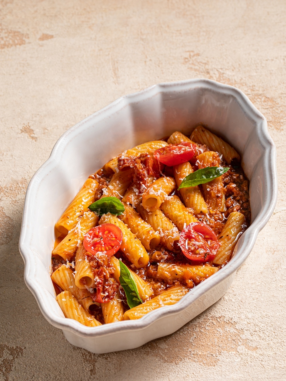 • Овощной соус болоньезе / томаты / базилик / пармезан / соевое мясо